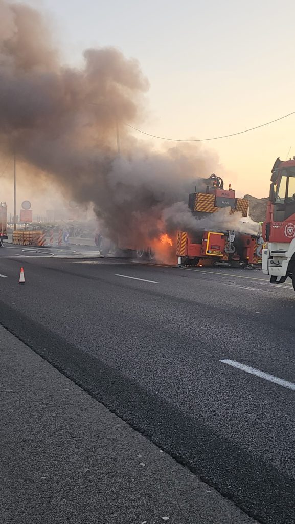 בשעה 6:30 הבוקר התקבל דיווח על משאית שעולה באש בכביש 1 לכיוון מזרח. משטרת התנועה הגיעה במהירות למקום וחסמה את הכביש למניעת פגיעה בחיי אדם.