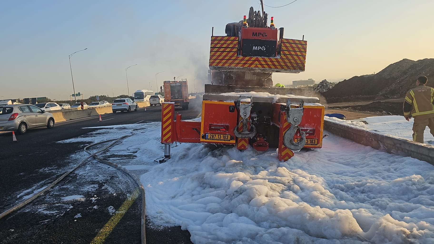 בשעה 6:30 הבוקר התקבל דיווח על משאית שעולה באש בכביש 1 לכיוון מזרח. משטרת התנועה הגיעה במהירות למקום וחסמה את הכביש למניעת פגיעה בחיי אדם.
