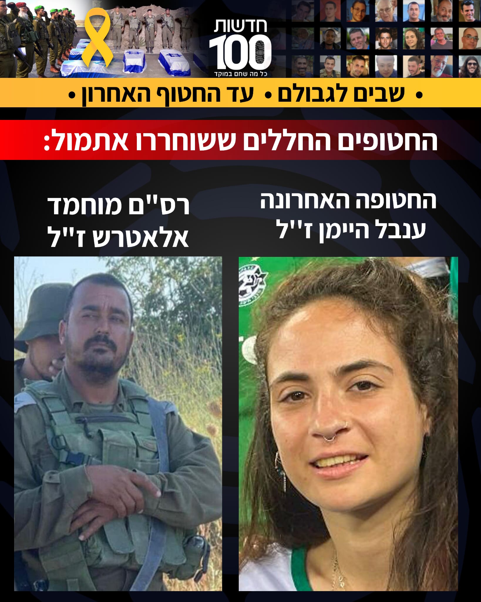 גופות החטופים ענבר הימן ומחמד אלאטרש הושבו לישראל