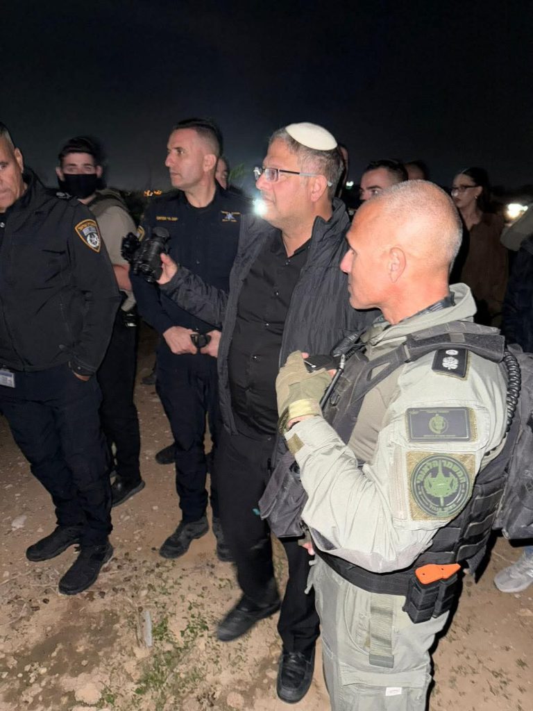 לזירה הגיעו השר בן גביר וממ"ז דרום ניצב חיים בובליל, שמלווים מקרוב את הכוחות ונמצאים בתצפיות ובנקודות הפיקוד. לפי גורמי הביטחון, הכוחות זרמו בשעות האחרונות למספר מוקדים במטרה לבצע מעצרים, חיפושים ותפיסות, תוך הפתעה מבצעית מלאה.
