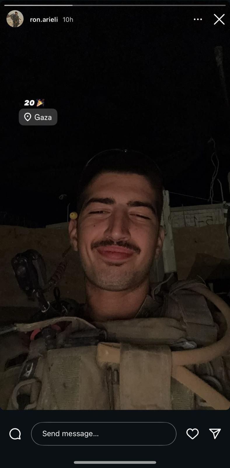 סגן רון אריאלי חגג היום את יום הולדתו ה-20. בלילה העלה סטורי אחרון מרצועת עזה וכתב "20". כעבור מספר שעות נפל בקרב.